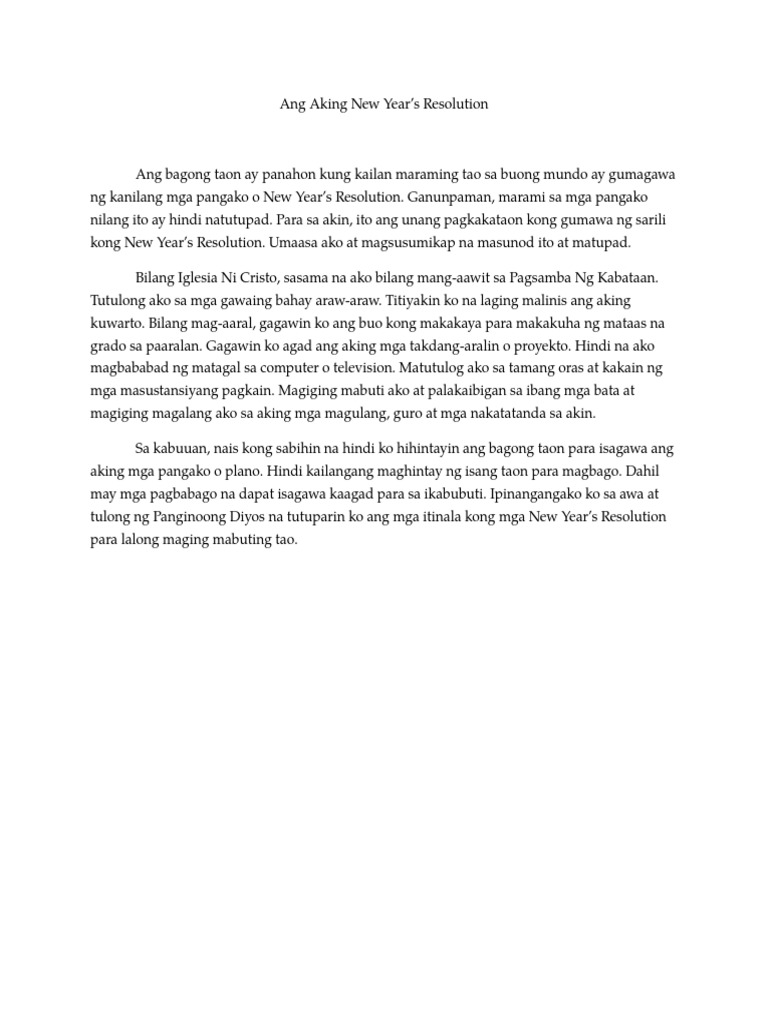 New Year Resolution 2020 Tagalog