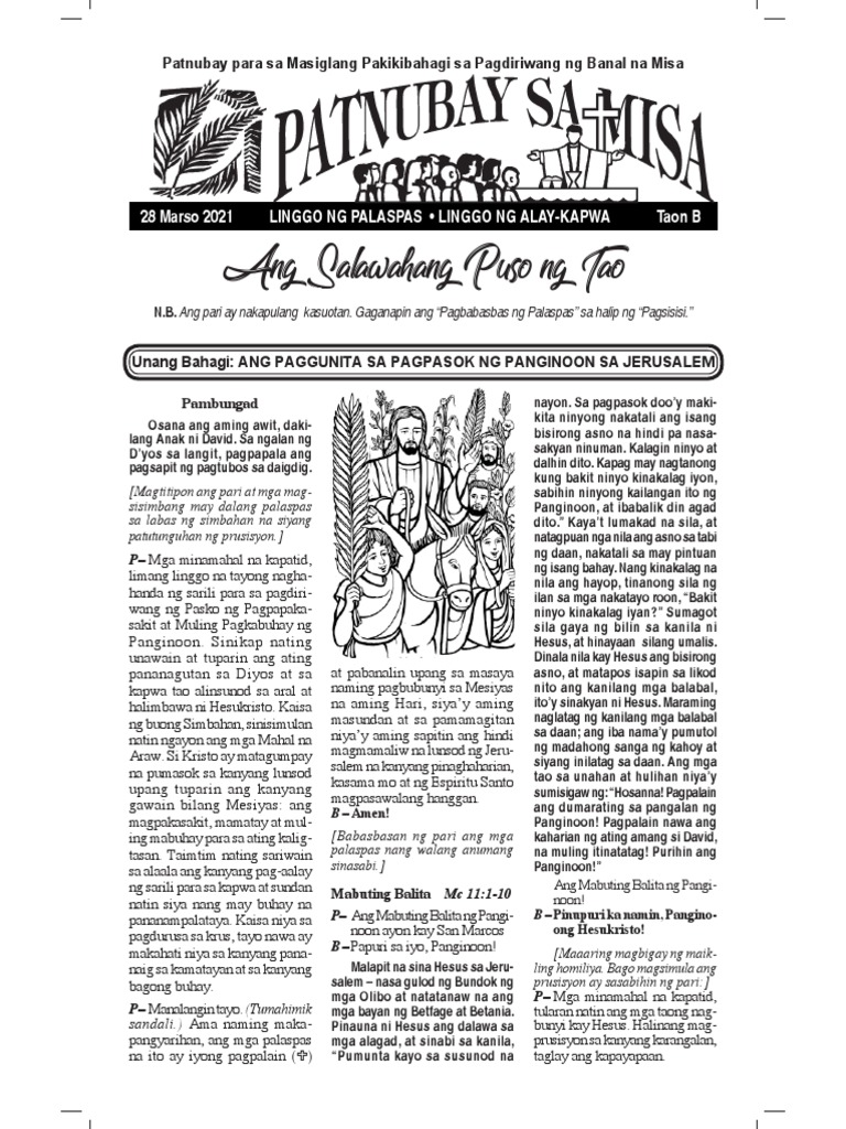 Patnubay para sa Masiglang Pakikibahagi sa Pagdiriwang ng Banal na Misa 7 Abril 2019 Ika-5 Linggo ng. 84 79 Para sa 2 Bilyon na Napariwarang Kaluluwa. Panginoon maging ganap nawa ang aming paghahanda sa pagdating ni Hesus.