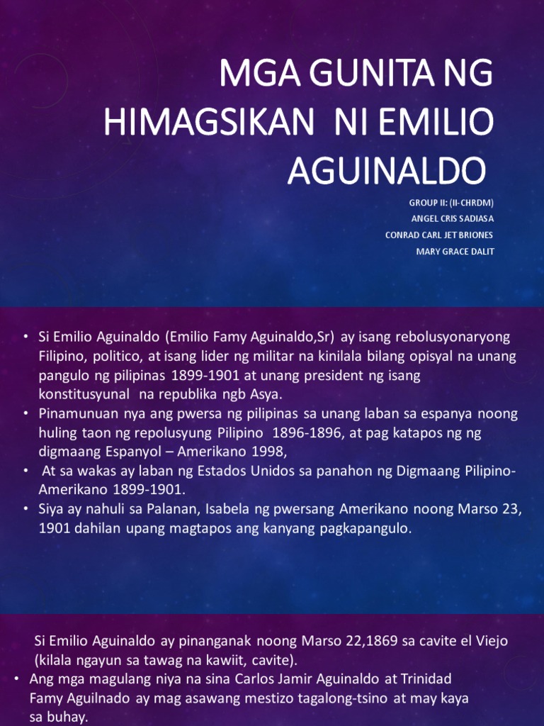 Mga Gunita Ng Himagsikan Emilio Aguinaldo Group4x Group 4 Casia Nicole Dulay Irish Joy Gallardo Denise Jessa Leoncito Kristian Paul Mabeza Course Hero