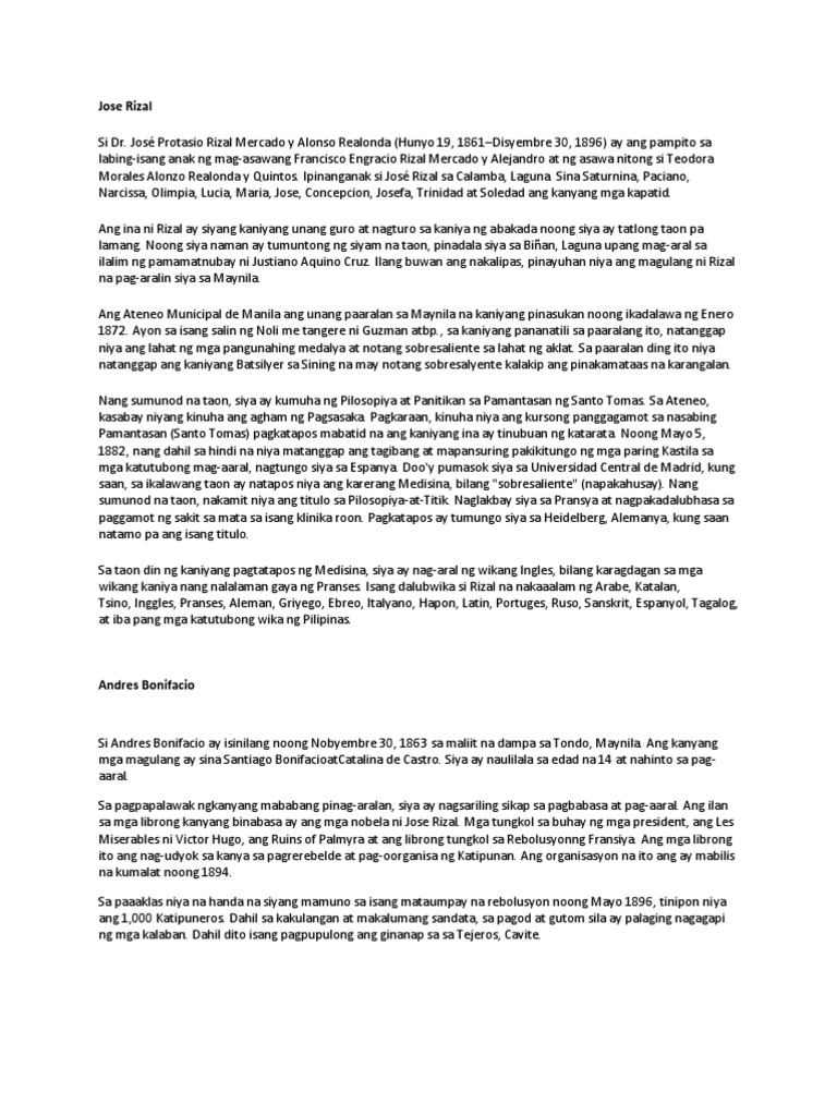 Sa kaso ni Rizal at ni Burgos at maging ng GOMBURZA ay manghihilakbot ang mambabasa kung iisipin ang pagkakatulad ng aksidente ng kasaysayan. Ang Paglalakbay ni Jose Rizal sa Larangan ng Medisina Alamin Alamin Alamin Natin. Ito ay isang tula na nakasulat sa wikang Tagalog tungkol sa pag-ibig ng isang tao sa kanyang katutubong wika.